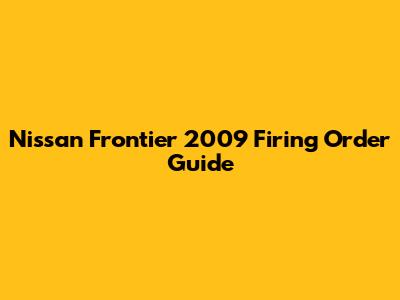 Nissan Frontier 2009 Firing Order Guide