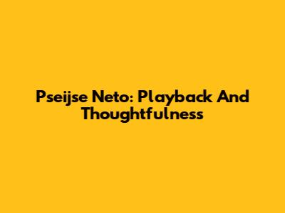 Pseijse Neto: Playback And Thoughtfulness