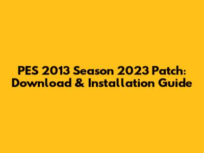 PES 2013 Season 2023 Patch: Download & Installation Guide