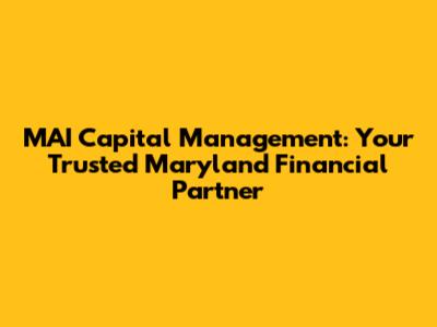 MAI Capital Management: Your Trusted Maryland Financial Partner