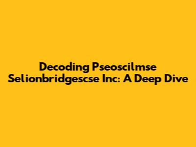 Decoding Pseoscilmse Selionbridgescse Inc: A Deep Dive