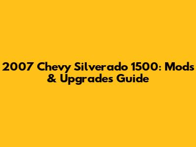 2007 Chevy Silverado 1500: Mods & Upgrades Guide