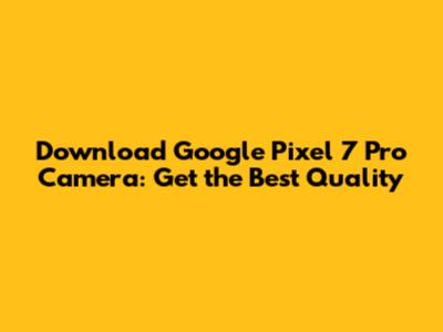 Download Google Pixel 7 Pro Camera: Get The Best Quality