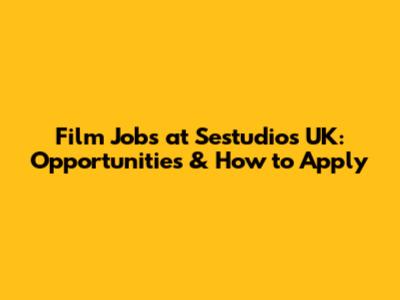 Film Jobs At Sestudios UK: Opportunities & How To Apply