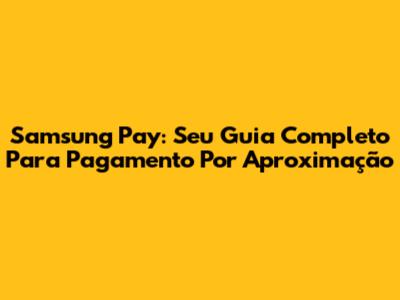 Samsung Pay: Seu Guia Completo Para Pagamento Por Aproximação