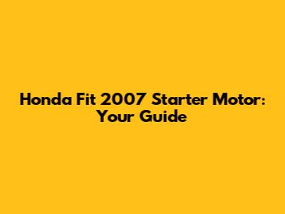 Step-by-Step: Replacing Your Honda Fit 2007 Starter Motor