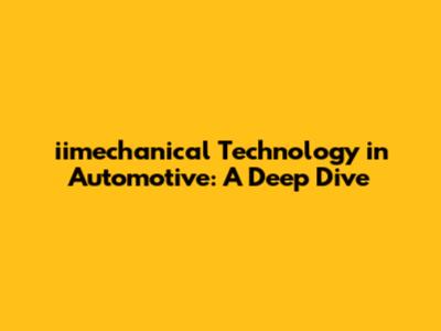 Iimechanical Technology In Automotive: A Deep Dive