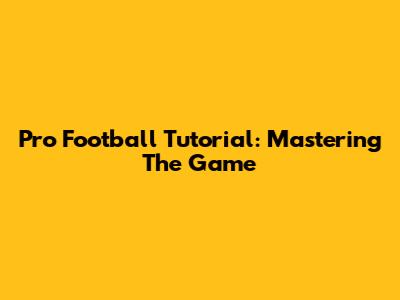 Pro Football Tutorial: Mastering The Game