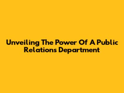 Unveiling The Power Of A Public Relations Department