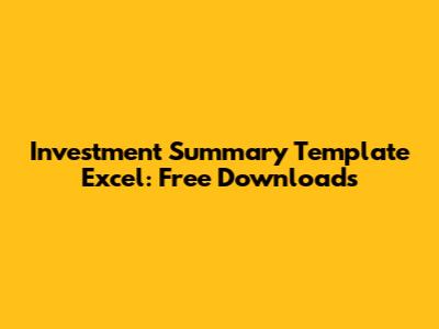 Investment Summary Template Excel: Free Downloads