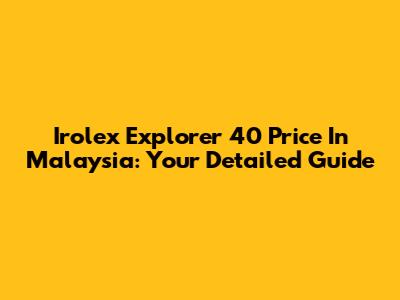 Irolex Explorer 40 Price In Malaysia: Your Detailed Guide