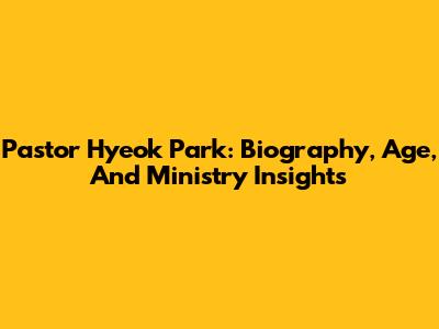 Pastor Hyeok Park: Biography, Age, And Ministry Insights