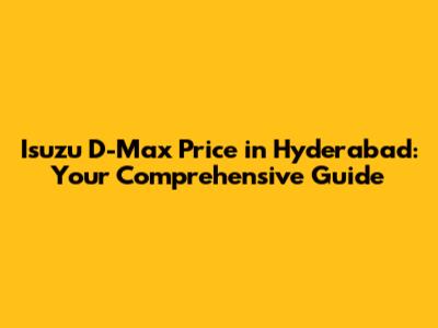 Isuzu D-Max Price In Hyderabad: Your Comprehensive Guide