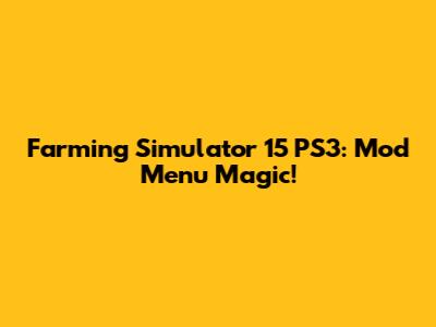 Farming Simulator 15 PS3: Mod Menu Magic!
