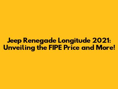Hey guys! Are you curious about the Jeep Renegade Longitude 2021 and its FIPE price? You've come to the right place! This article dives deep into everything you need to know about this awesome SUV, from its pricing to its features and why it might just be the perfect ride for you. Buckle up, because we're about to explore the world of the Jeep Renegade Longitude 2021!