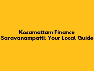 Hey guys! Looking for some reliable financial services in Saravanampatti? You've probably heard of Kosamattam Finance, and for good reason! They're a well-known name when it comes to gold loans and other financial products. This guide will give you all the essential info about the Kosamattam Finance branch in Saravanampatti, making your financial journey a whole lot smoother. So, let’s dive right in and explore what Kosamattam Finance in Saravanampatti has to offer!