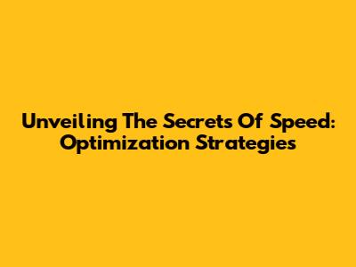 Unveiling The Secrets Of Speed: Optimization Strategies