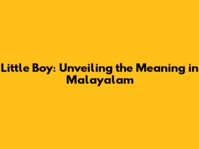 Little Boy: Exploring Its Meaning In Malayalam