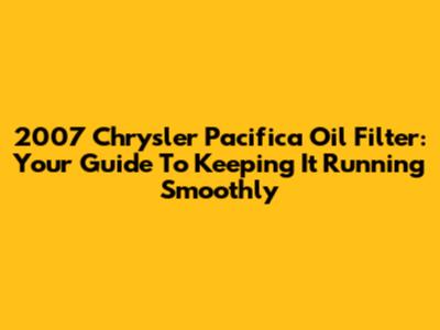 2007 Chrysler Pacifica Oil Filter: Your Guide To Keeping It Running Smoothly