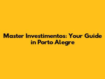 Hey guys! Are you ready to dive into the world of investments right here in Porto Alegre? Whether you're a seasoned investor or just starting, understanding the local landscape is super important. Let's break down everything you need to know about Master Investimentos and how to make the most of your money in this vibrant city.