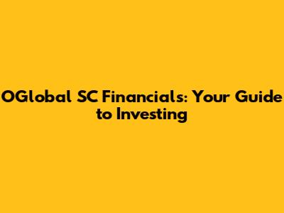 Hey there, finance enthusiasts! Ever heard of OGlobal SC Financials Group Inc.? If not, you're in the right place! We're diving deep into what makes this company tick, exploring its services, and figuring out if it's a good fit for your investment strategy. So, grab your favorite drink, sit back, and let's get started. This comprehensive guide breaks down everything you need to know about OGlobal SC Financials, helping you make informed decisions about your financial future. We will cover its operations, investment opportunities, and what to consider before taking the plunge. Whether you're a seasoned investor or just starting out, this article provides valuable insights into this financial player.
