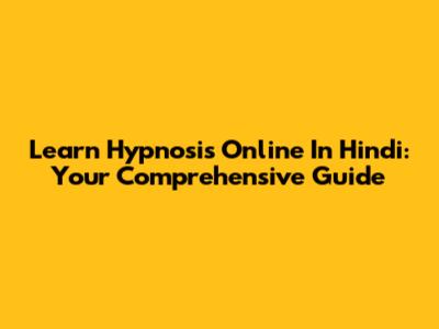 Learn Hypnosis Online In Hindi: Your Comprehensive Guide