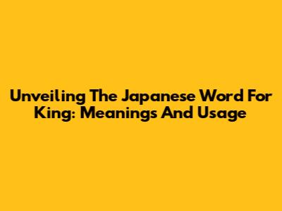 Unveiling The Japanese Word For King: Meanings And Usage
