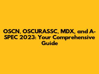 OSCN, OSCURASSC, MDX, And A-SPEC 2023: What You Need To Know