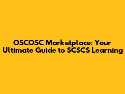 OSCOSC Marketplace: Your Guide To SCSCS Learning
