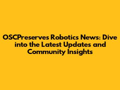 OSCPreserves Robotics News: Latest Updates & Community Insights