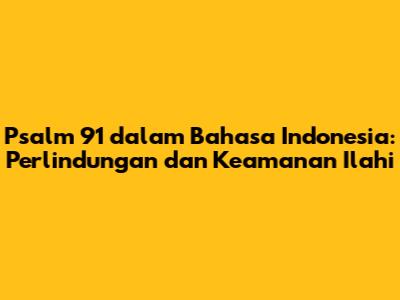 Psalm 91 dalam Bahasa Indonesia adalah salah satu pasal yang paling dicintai dan sering dikutip dalam Alkitab. Pasal ini menawarkan penghiburan, harapan, dan janji perlindungan ilahi bagi mereka yang percaya kepada Tuhan. Dalam artikel ini, kita akan menjelajahi makna mendalam dari Mazmur 91, khususnya dalam terjemahan bahasa Indonesia, dan bagaimana kita dapat mengaplikasikannya dalam kehidupan sehari-hari. Mari kita selami keindahan dan kekuatan ayat-ayat Alkitab ini!