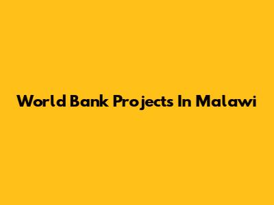 World Bank Projects In Malawi