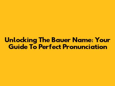 Unlocking The Bauer Name: Your Guide To Perfect Pronunciation