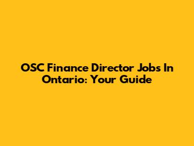 OSC Finance Director Jobs In Ontario: Your Guide