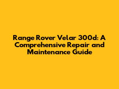 Range Rover Velar 300d: Expert Repair & Maintenance Guide