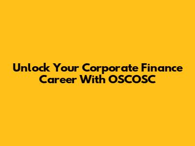 Unlock Your Corporate Finance Career With OSCOSC
