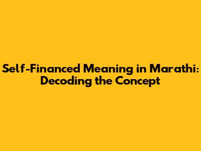 Self-Financed: Unveiling The Meaning In Marathi & Beyond