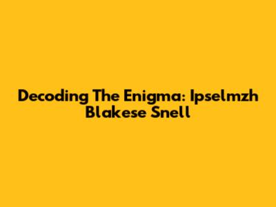 Decoding The Enigma: Ipselmzh Blakese Snell