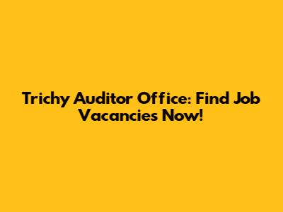 Trichy Auditor Office: Find Job Vacancies Now!