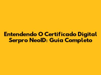Entendendo O Certificado Digital Serpro NeoID: Guia Completo