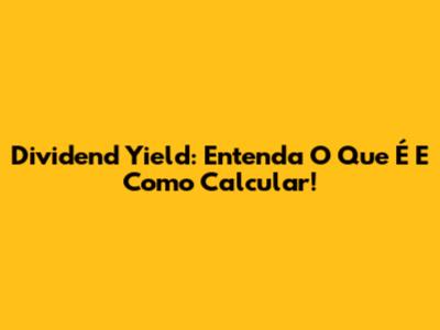Dividend Yield: Entenda O Que É E Como Calcular!