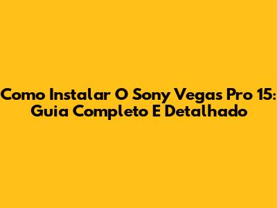 Como Instalar O Sony Vegas Pro 15: Guia Completo E Detalhado