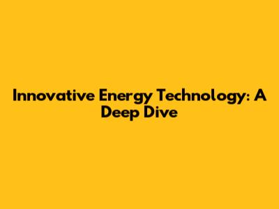 Innovative Energy Technology: A Deep Dive