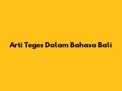 Arti Teges Dalam Bahasa Bali
