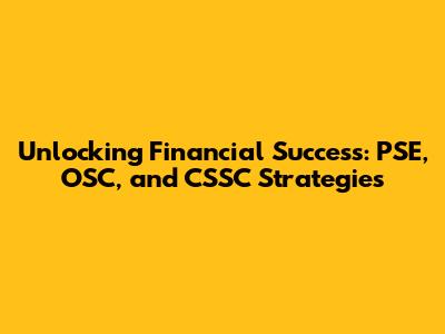 Hey there, financial enthusiasts! Ready to dive into the world of smart investments and financial growth? Today, we're exploring the exciting intersection of PSE (Philippine Stock Exchange) investments, OSC (Online Securities Course) knowledge, and CSSC (maybe you meant Corporate Social and Sustainable Credit) finance strategies. Whether you're a seasoned investor or just starting out, this guide will provide you with valuable insights and practical tips to navigate the financial landscape and achieve your goals. So, grab your coffee, get comfy, and let's unlock the secrets to financial success together!
