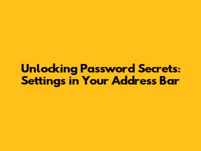 Hey guys, ever wondered about the settings passwords di address bar? It's like having a secret key to manage your online credentials right at your fingertips. Seriously, it's a game-changer! In this guide, we're diving deep into the fascinating world of browser settings and how they interact with your passwords. We'll explore how you can view, edit, and even export your saved passwords directly from your address bar, making your digital life a whole lot easier. Plus, we'll touch on some cool tricks and tips to keep your passwords secure and your browsing experience smooth. Ready to unlock the secrets? Let's get started!