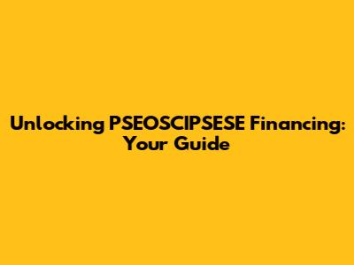 Hey there, finance enthusiasts! Ever heard of PSEOSCIPSESE financing? If you're scratching your head, no worries, you're in the right place! This guide is designed to demystify everything about PSEOSCIPSESE financing, breaking down what it is, how it works, and why it might be a game-changer for you. We'll dive deep, covering the ins and outs, so you can confidently navigate this financial landscape. So, grab a coffee, get comfy, and let's unlock the secrets of PSEOSCIPSESE financing together. We're going to make this as easy and engaging as possible, so you'll be an expert in no time!