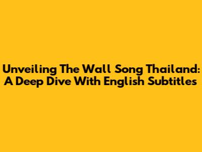 Unveiling 'The Wall Song' Thailand: A Deep Dive With English Subtitles