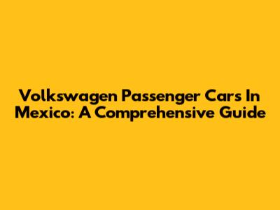 Volkswagen Passenger Cars In Mexico: A Comprehensive Guide