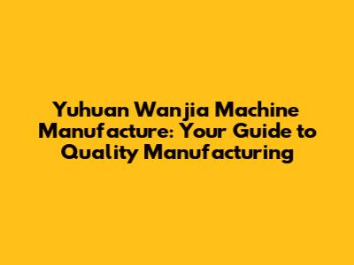Yuhuan Wanjia Machine: Your Guide To Quality Manufacturing